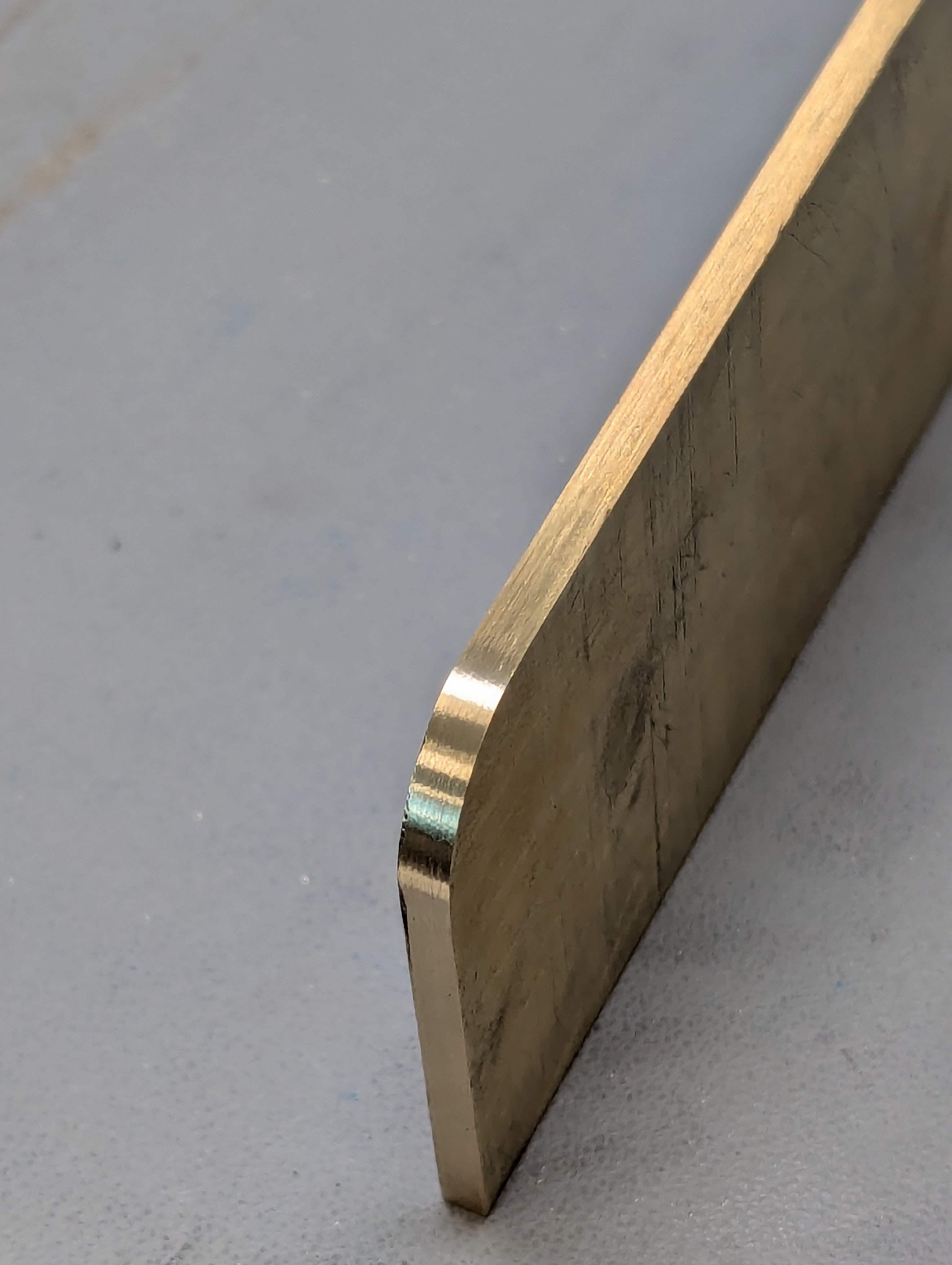 Right: my finished riveting stake, complete with squared edges, rounded corner and consistent satin finish. I was very proud of this finish, as it helped the piece look much more refined and complete.